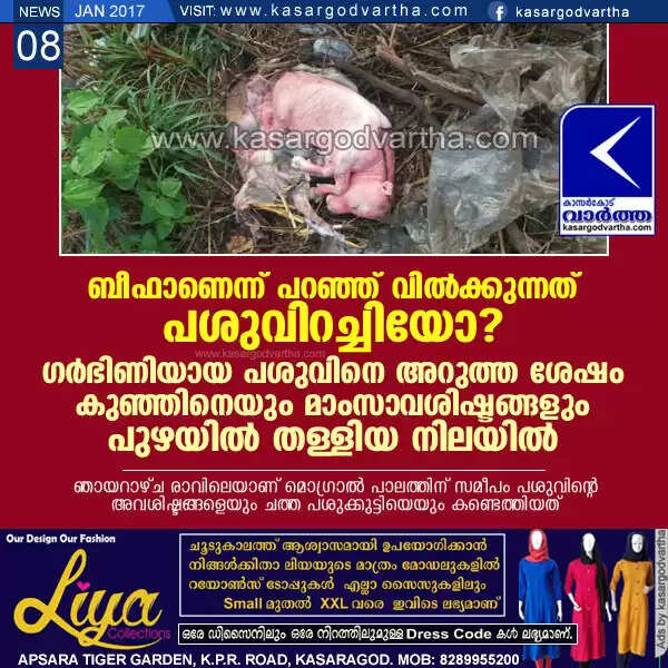ബീഫാണെന്ന് പറഞ്ഞ് വില്‍ക്കുന്നത് പശുവിറച്ചിയോ? ഗര്‍ഭിണിയായ പശുവിനെ അറുത്ത ശേഷം കുഞ്ഞിനെയും മാംസാവശിഷ്ടങ്ങളും പുഴയില്‍ തള്ളിയ നിലയില്‍