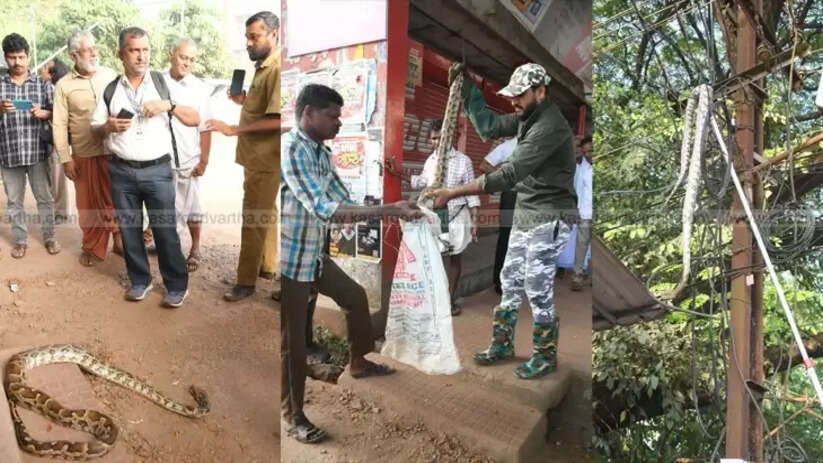 ഉടൻതന്നെ കെഎസ്ഇബി കാസർകോട് സബ് എൻജിനീയർ സദർ റിയാസിന്റെ നേതൃത്വത്തിലുള്ള സംഘം സ്ഥലത്തെത്തി. സ്നേക് റെസ്ക്യൂർ അമീൻ അടുക്കത്ബയൽ കമ്പ് ഉപയോഗിച്ച് അതീവ ശ്രദ്ധയോടെ കുടുങ്ങിയ പാമ്പിനെ താഴെയിറക്കി. തുടർ നടപടികൾക്കായി പാമ്പിനെ വനം വകുപ്പ് ജീവനക്കാർക്ക് കൈമാറി.
