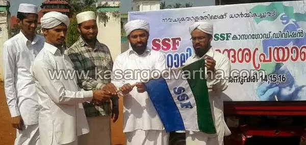 ഹാഫിള് ഇല്യാസ് സഖാഫി പാടലടുക്ക, കെ.എം കളത്തൂര്, ശംസീര് സൈനി, സാബിത്ത് മുഗു എന്നിവര് സംബന്ധിച്ചു. കാസര്കോട്, വിദ്യാനഗര്, നായന്മാര്മൂല, ചെര്ക്കള, ബദിയഡുക്ക എന്നിവിടങ്ങളിലെ പര്യടനത്തിനുശേഷം വ്യാഴാഴ്ച വൈകിട്ട് പര്യടനം അവസാനിക്കും.