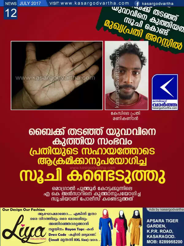 Keywords: Kasaragod, Kerala, news, Stabbed, case, Accuse, arrest, Stabbing case; Needle found