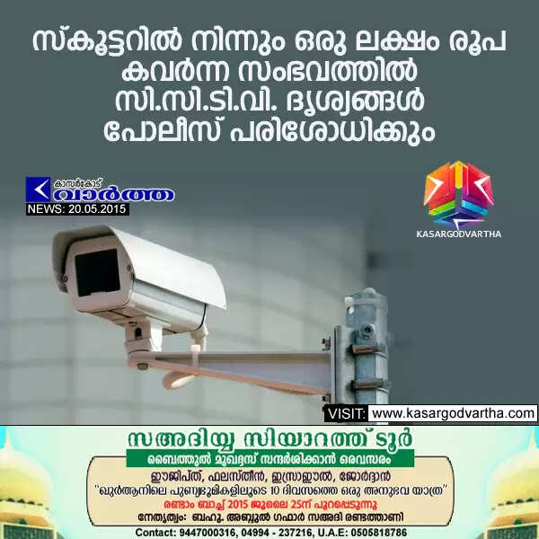 സ്‌കൂട്ടറില്‍ നിന്നും ഒരു ലക്ഷം രൂപ കവര്‍ന്ന സംഭവത്തില്‍ സി.സി.ടി.വി. ദൃശ്യങ്ങള്‍ പോലീസ് പരിശോധിക്കും