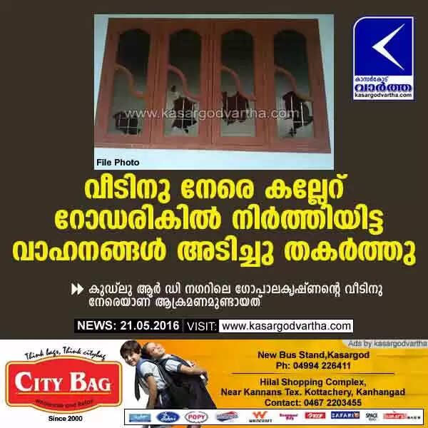 Keywords: Kasaragod, Road, Vehicles, Kudlu, Police, Case, Gopalakrishna, Tempo, Bus, Stone pelting against house in Kudlu.