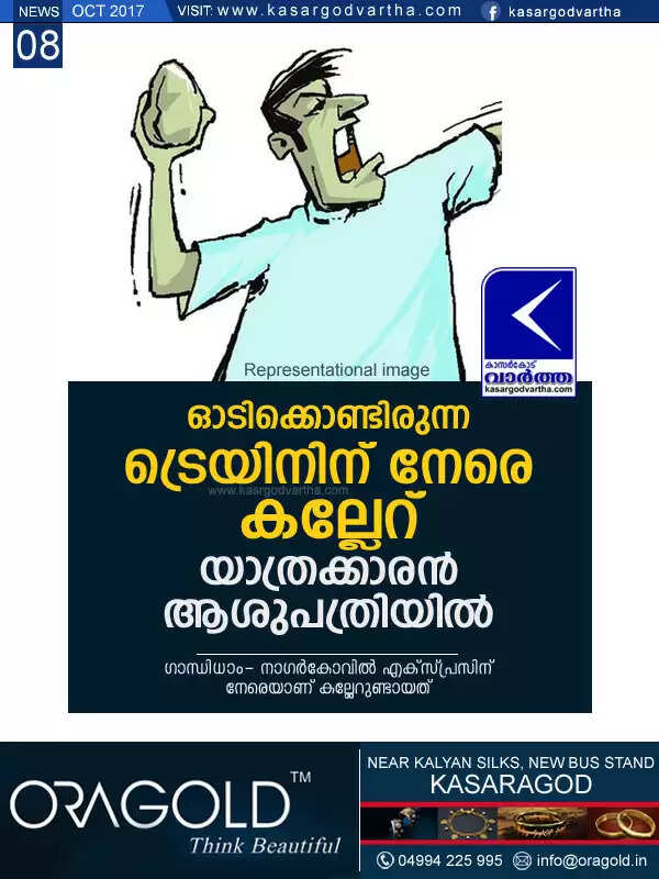 ഓടിക്കൊണ്ടിരുന്ന ട്രെയിനിന് നേരെ കല്ലേറ്; യാത്രക്കാരന്‍ ആശുപത്രിയില്‍