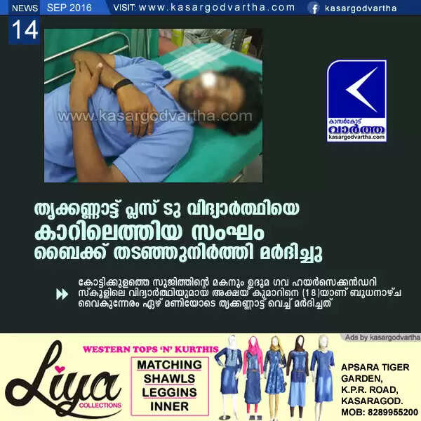 Keywords : Trikkanad, Attack, Student, Injured, Hospital, Kasaragod, Akshay Kumar.