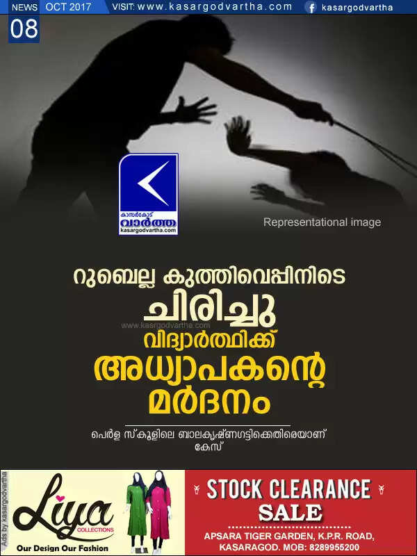 Keywords: Kasaragod, Kerala, news, Student, Assault, Student assaulted by teacher; police case registered