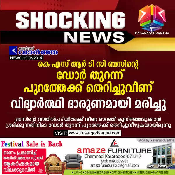 കെ എസ് ആര്‍ ടി സി ബസിന്റെ ഡോര്‍ തുറന്ന് പുറത്തേക്ക് തെറിച്ചുവീണ് വിദ്യാര്‍ത്ഥി ദാരുണമായി മരിച്ചു