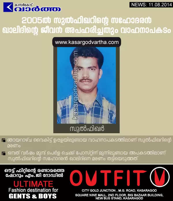 2005ല് സുല്ഫിഖറിന്റെ സഹോദരന് ഖാലിദിന്റെ ജീവന് അപഹരിച്ചതും വാഹനാപകടം