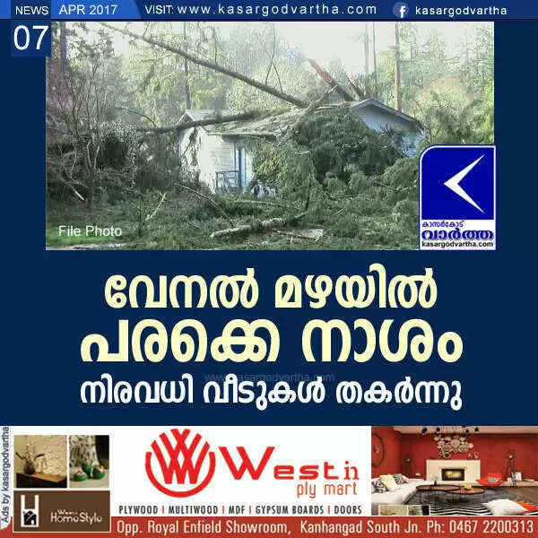 വേനല്മഴയില് പരക്കെ നാശം; നിരവധി വീടുകള് തകര്ന്നു