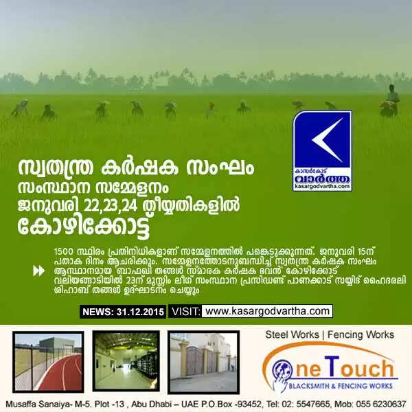 സ്വതന്ത്ര കര്ഷക സംഘം സംസ്ഥാന സമ്മേളനം ജനുവരി 22,23,24 തീയ്യതികളില് കോഴിക്കോട്ട്