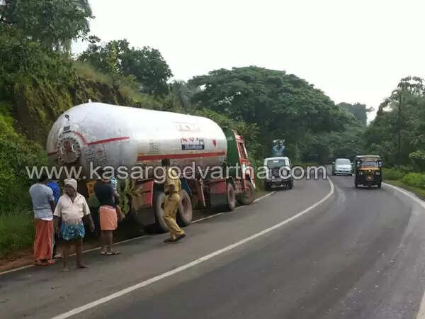 ബേവിഞ്ചയില്‍ ഗ്യാസ് ടാങ്കര്‍ ലോറി നിയന്ത്രണം വിട്ടു; അപകടമൊഴിവായത് തലനാരിഴക്ക്