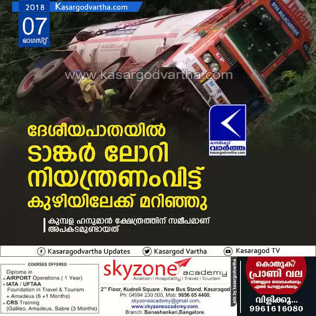 Keywords:  Kasaragod, Kerala, news, Accident, Kumbala, Tanker-Lorry, Tanker lorry accident in Kumbala