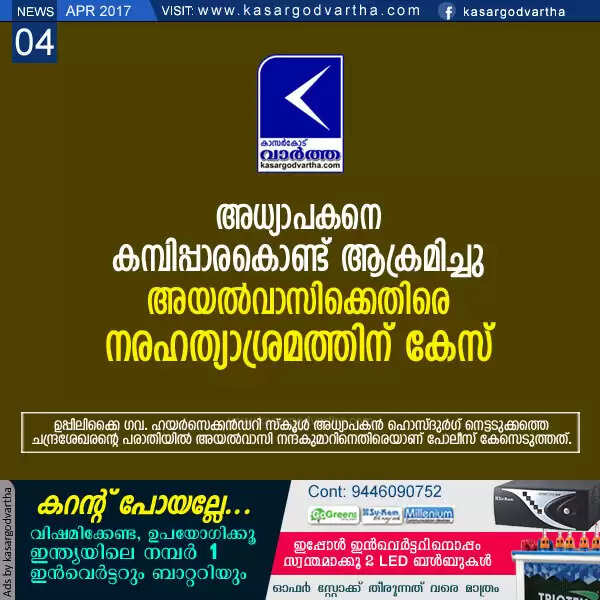 Keywords: Kasaragod, Kanhangad, Teachers, Attack, Assault, Case, Neighbour
