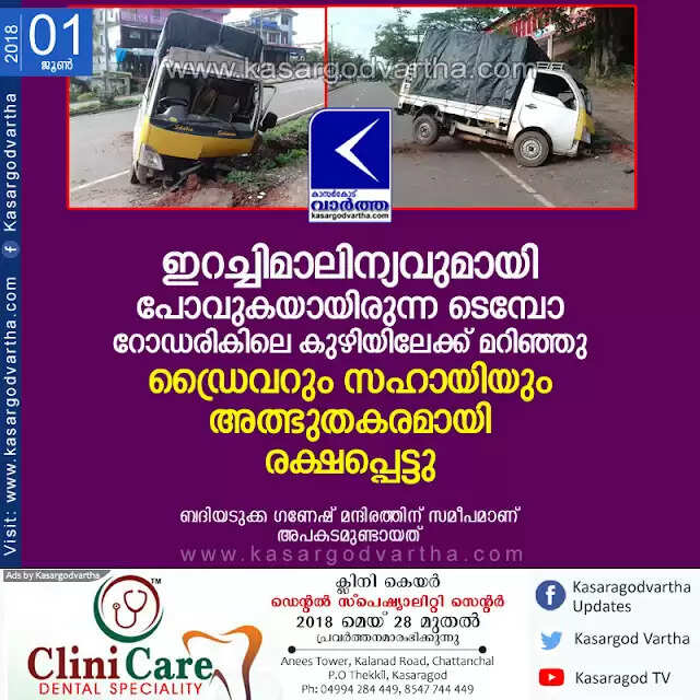 Keywords:  Kasaragod, Kerala, news, Accident, Badiyadukka, Tempo Accident in Badiyadukka