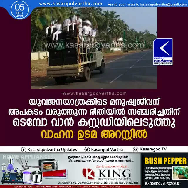 Keywords: Tempo Van, Kanhangad, Custody, Arrest, Kasaragod, News, Tempo van in police custody for Dangerous drive