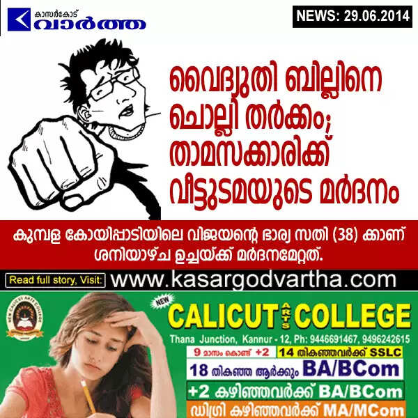 Keywords: Kasaragod, House, Assault, Electricity, Kumbala, General-hospital, Hospital, Treatment, Tenant assaulted by landlord.