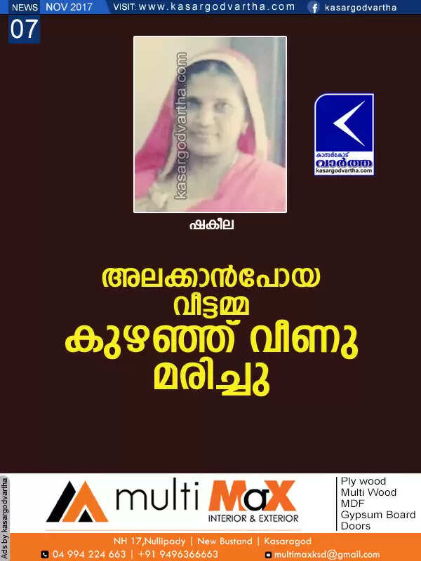 അലക്കാന്പോയ വീട്ടമ്മ കുഴഞ്ഞ് വീണുമരിച്ചു