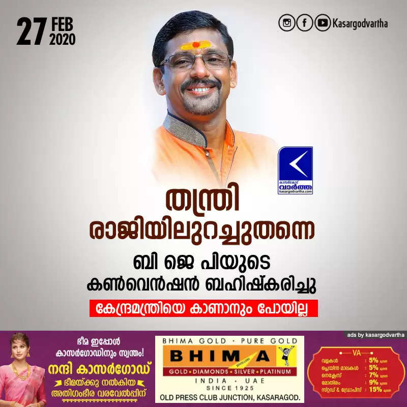 Keywords: Kasaragod, BJP, Kerala, News, Convention, Minister, Thanthri not attend BJP convention < !- START disable copy paste -->