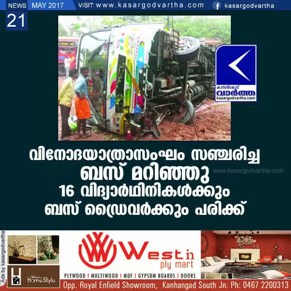 വിനോദയാത്രാസംഘം സഞ്ചരിച്ച ബസ് മറിഞ്ഞു; പതിനാറ് വിദ്യാര്ഥിനികള്ക്കും ബസ് ഡ്രൈവര്ക്കും പരിക്ക്