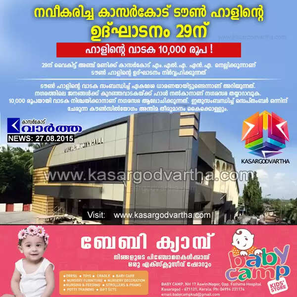 Keywords: Kasaragod, Kerala, N.A.Nellikunnu, MLA, Inauguration, Town hall inauguration on 29th.