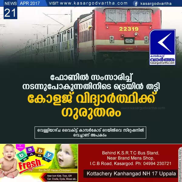 ഫോണില്‍ സംസാരിച്ച് നടന്നുപോകുന്നതിനിടെ ട്രെയിന്‍ തട്ടി കോളജ് വിദ്യാര്‍ത്ഥിക്ക് ഗുരുതരം