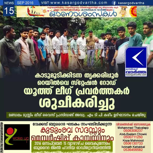 Keywords: Kasaragod, Kerala, Trikaripur, Youth League, Railway station, Cleaning, Onam-celebration, Trikaripur Railway station road cleaned by Youth league.