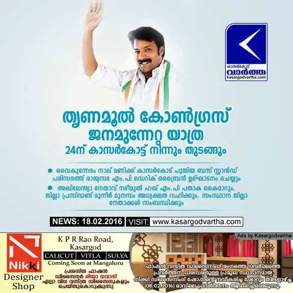 തൃണമൂല് കോണ്ഗ്രസ് ജനമുന്നേറ്റ യാത്ര 24ന് കാസര്കോട്ട് നിന്നും തുടങ്ങും