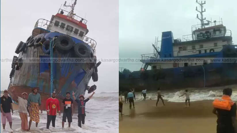 Article Summary: Tugboat stranded for days washes ashore at Mogral Puthur, crew safe.