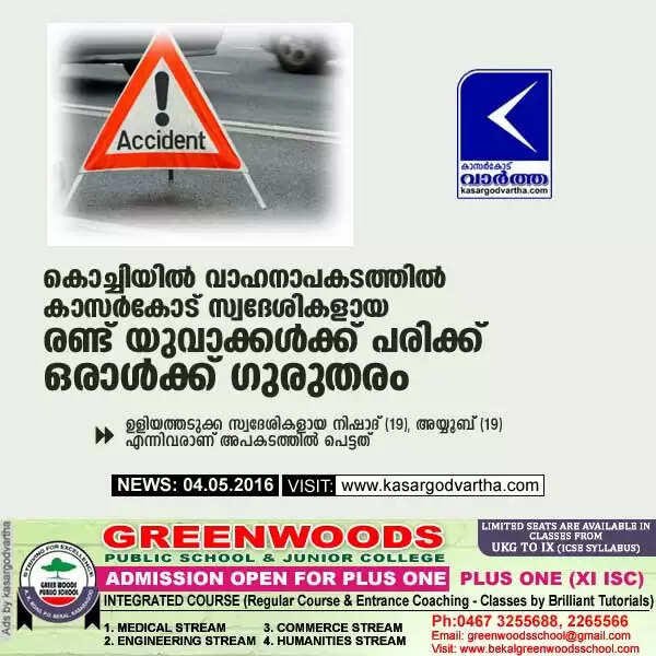 കൊച്ചിയില് വാഹനാപകടത്തില് കാസര്കോട് സ്വദേശികളായ രണ്ട് യുവാക്കള്ക്ക് പരിക്ക്; ഒരാള്ക്ക് ഗുരുതരം