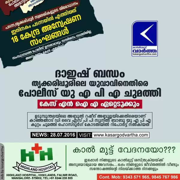 Keywords : Trikaripure, Case, Investigation, Kasaragod, Police, UAPA, DYSP P Sunil Babu, Abdul Rasheed Abdulla.