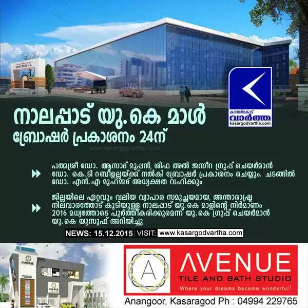 Keywords: Release, Kasaragod, Inauguration, President, Leader, Childrens, Business-man, Brochure, Old bus stand, Speed, International, District, Business mall, Dr.Asad Mooppan, Nalappad UK Mall, Security system, Dr.kt Rabeehullah, UK Yusuf