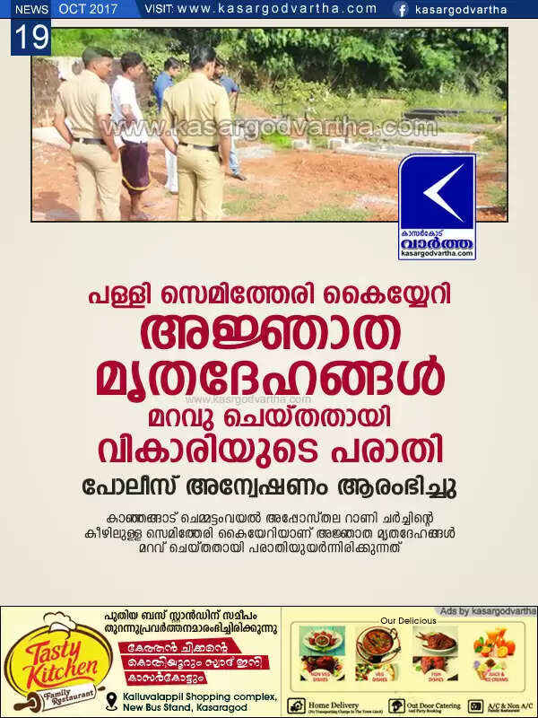 Keywords: Kasaragod, Kerala, news, Deadbody, Police, complaint, Investigation, Unknown dead bodies buried in cemetery; complaint lodged