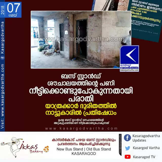ബസ് സ്റ്റാന്ഡ് ശൗചാലയത്തിന്റെ പണി നീട്ടിക്കൊണ്ടുപോകുന്നതായി പരാതി; യാത്രക്കാര് ദുരിതത്തില്, നാട്ടുകാരില് പ്രതിഷേധം