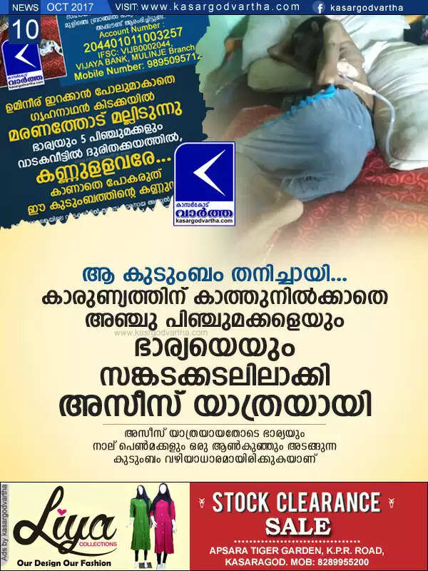 ആ കുടുംബം തനിച്ചായി... കാരുണ്യത്തിന് കാത്തുനില്ക്കാതെ അഞ്ചു പിഞ്ചുമക്കളെയും ഭാര്യയെയും സങ്കടക്കടലിലാക്കി അസീസ് യാത്രയായി