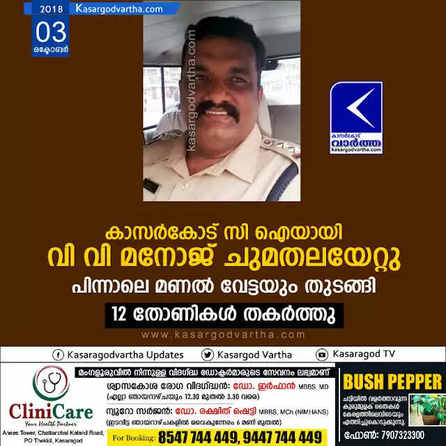 Keywords: V V Manoj appointed as Kasaragod CI, Kasaragod, News, CI, Police, Sand mafia, Circle Inspector, CI V.V. Manoj