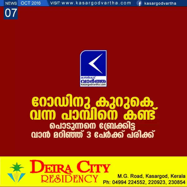 Keywords: Kasaragod, Badiyadukka, Snake, Omni Van, Manya, Wife, Accident, Break, Private Hospital, Van accident; 3 injured.