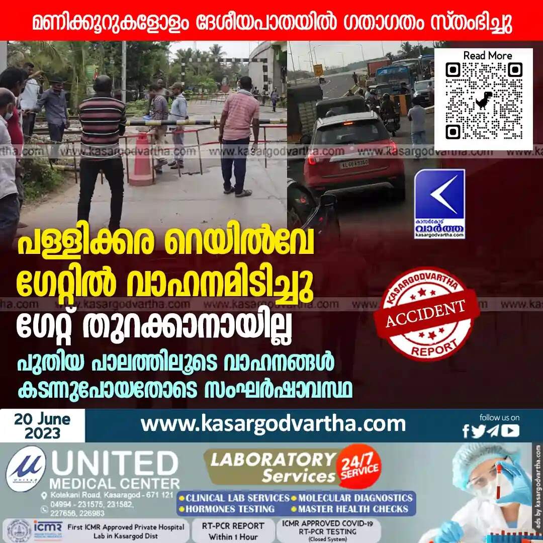 Keywords: Kasaragod, Kerala, News, Pallikkara, Neeleshwaram, Railway Gate, Vehicle, Accident, Vehicle hit Pallikkara railway gate; Traffic at standstill.
