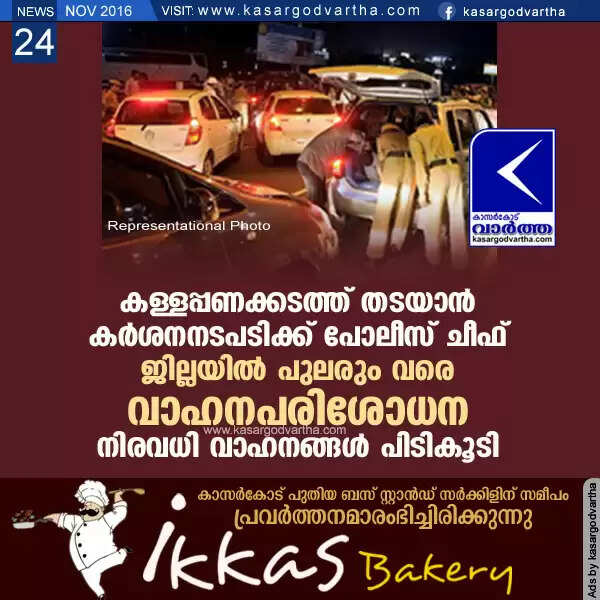 കള്ളപ്പണക്കടത്ത് തടയാന് കര്ശനനടപടിക്ക് പോലീസ് ചീഫ്: ജില്ലയില് പുലരും വരെ വാഹനപരിശോധന; നിരവധി വാഹനങ്ങള് പിടികൂടി