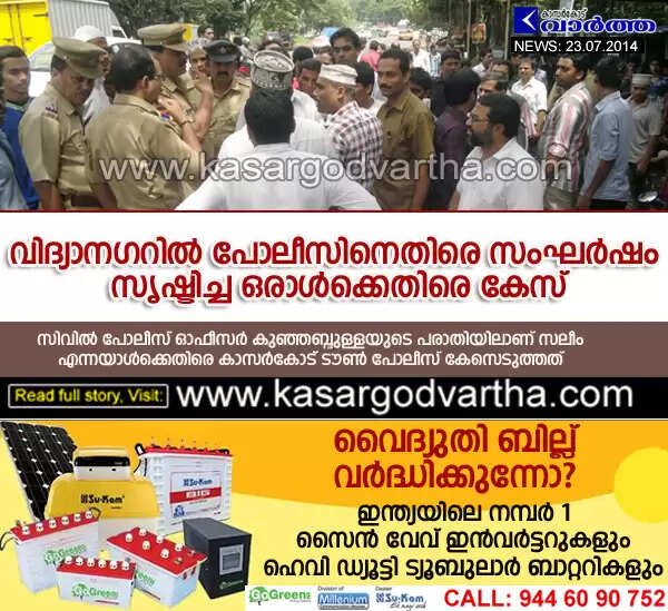 വിദ്യാനഗറില്‍ പോലീസിനെതിരെ സംഘര്‍ഷം സൃഷ്ടിച്ച ഒരാള്‍ക്കെതിരെ കേസ്