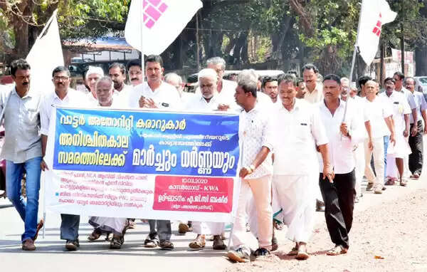 വിവിധ ഹെഡ്ഡുകളിലെ കുടിശിക കൊടുത്തു തീര്‍ക്കുക, ബില്‍ ഡിസ്‌കൗണ്ടിംഗ് സിസ്റ്റം പി ഡബ്ല്യു ഡിയിലേതു പോലെ വാട്ടര്‍ അതോറിറ്റിയിലും നല്‍കുക എന്നീ ആവശ്യങ്ങളുന്നയിച്ച് വാട്ടര്‍ അതോറിറ്റി കരാറുകാര്‍ മാര്‍ച്ച് നടത്തി
