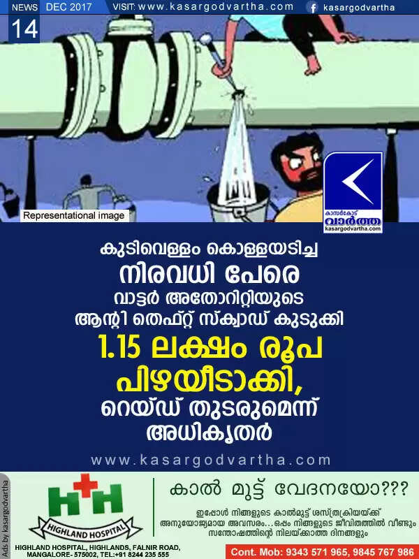 കുടിവെള്ളം കൊള്ളയടിച്ച നിരവധി പേരെ വാട്ടര് അതോറിറ്റിയുടെ ആന്റി തെഫ്റ്റ് സ്ക്വാഡ് കുടുക്കി; 1.15 ലക്ഷം രൂപ പിഴയീടാക്കി, റെയ്ഡ് തുടരുമെന്ന് അധികൃതര്