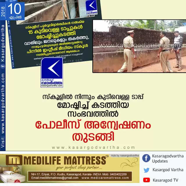 Keywords: Uppala, Kasaragod, Kerala, News, School, Robbery, Police, Investigation,Water taps robbed from school; Police investigation started.