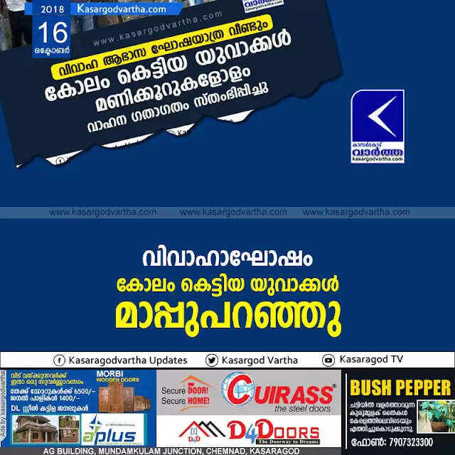 Keywords: Kerala, Uppala, news, Youth, Wedding, kasaragod, wedding-procession activities: Youth apologized