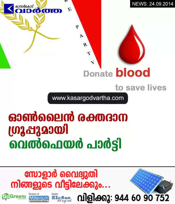 ഓണ്ലൈന് രക്തദാന ഗ്രൂപ്പുമായി വെല്ഫെയര് പാര്ട്ടി