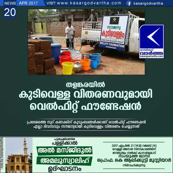 Keywords: Kasargod, Water, Distribution, Begins, Summer, Summer: Drinking water distribution begins, Welfit foundation, Thalangara, Welfit foundation begins water distribution.