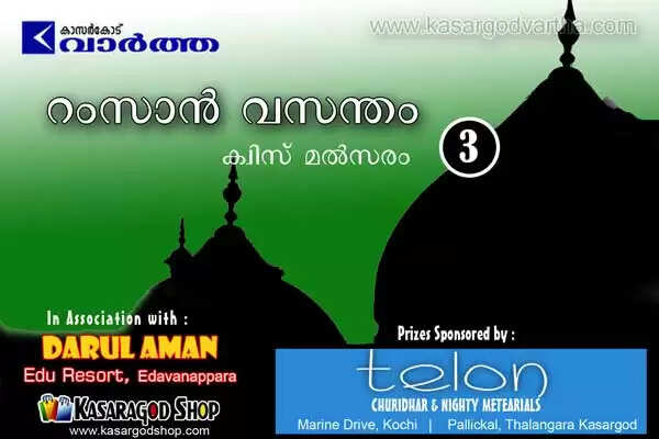 കാസര്കോട് വാര്ത്ത കുടുംബത്തിലെ അംഗങ്ങള്ക്കോ സമ്മാനങ്ങള് സ്പോണ്സര് ചെയ്യുന്ന സ്ഥാപനങ്ങളിലുള്ളവര്ക്കോ മത്സരത്തില് പങ്കെടുക്കാന് പാടില്ല.