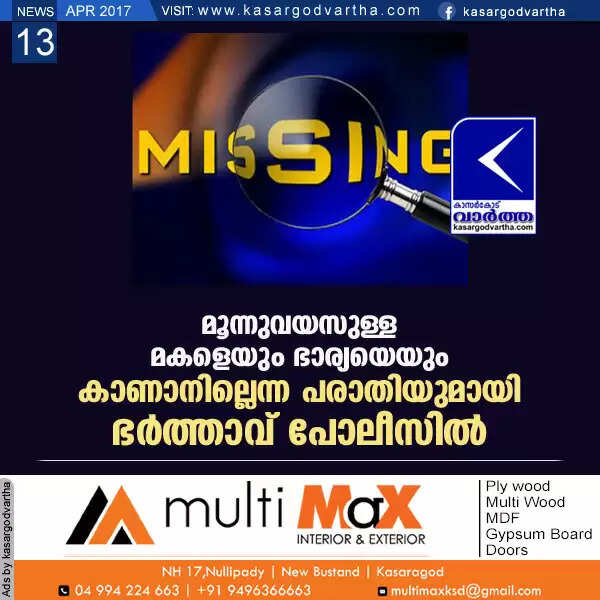 Keywords: Kasaragod, Padanna, wife, Missing, Complaint, Husband, Daughter, Police, Investigation, Wife and daughter goes missing; Husband lodges complaint.