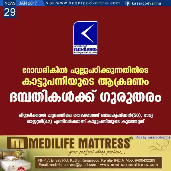 Keywords: Kasaragod, Kanhangad, Road, General-hospital, Rajasree, Wild boar, Couples, Critical, Pariyaram Medical College, Wild boar Attack; Couples Seriously Injured.