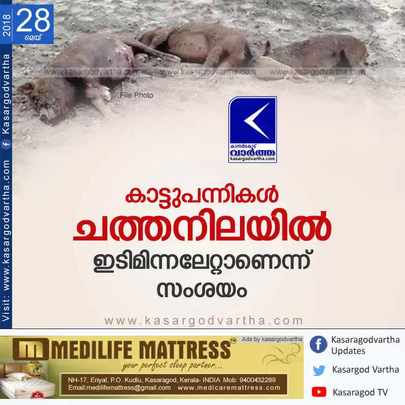 Keywords: Kasaragod, Kerala, news, Vellarikundu, Wild pigs found dead