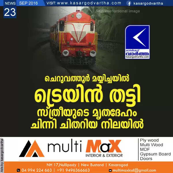 Keywords: Kasaragod, Kerala, Cheruvathur, Deadbody, Train, Cheruvathur Mayyicha, Train hits, Woman dies after train hits.