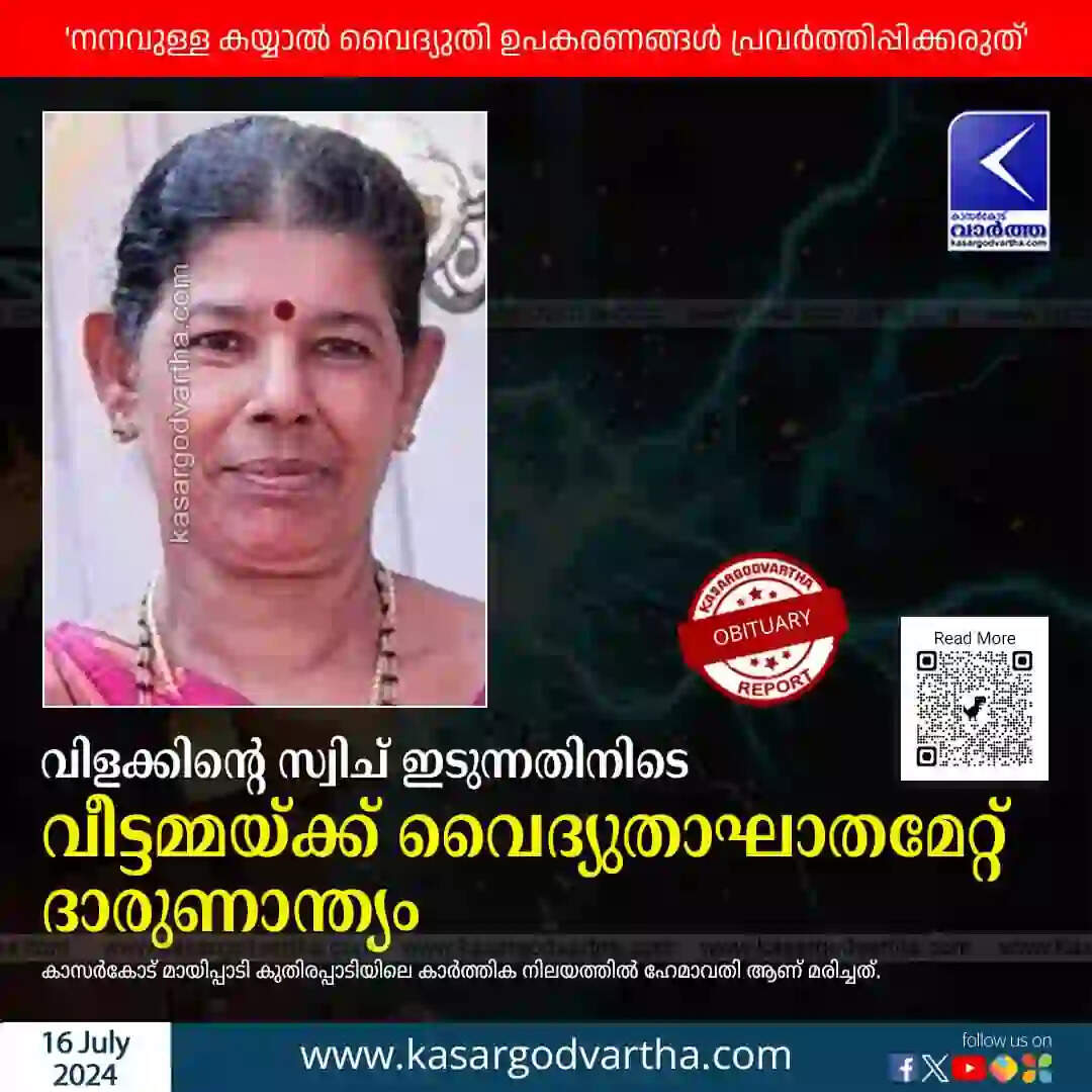 Obituary | വിളക്കിന്റെ സ്വിച് ഇടുന്നതിനിടെ വീട്ടമ്മയ്ക്ക് വൈദ്യുതാഘാതമേറ്റ് ദാരുണാന്ത്യം